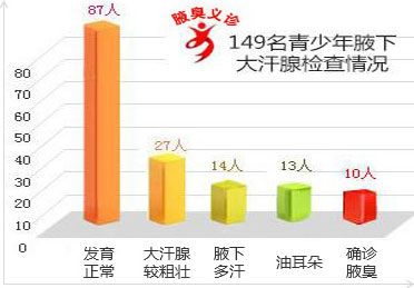 另,以及汗腺分泌物与微生物作用、口味肥甘厚实、小汗腺性臭汗症3种因素。此12种因素是狐臭病因,尤以遗传因素最常见。